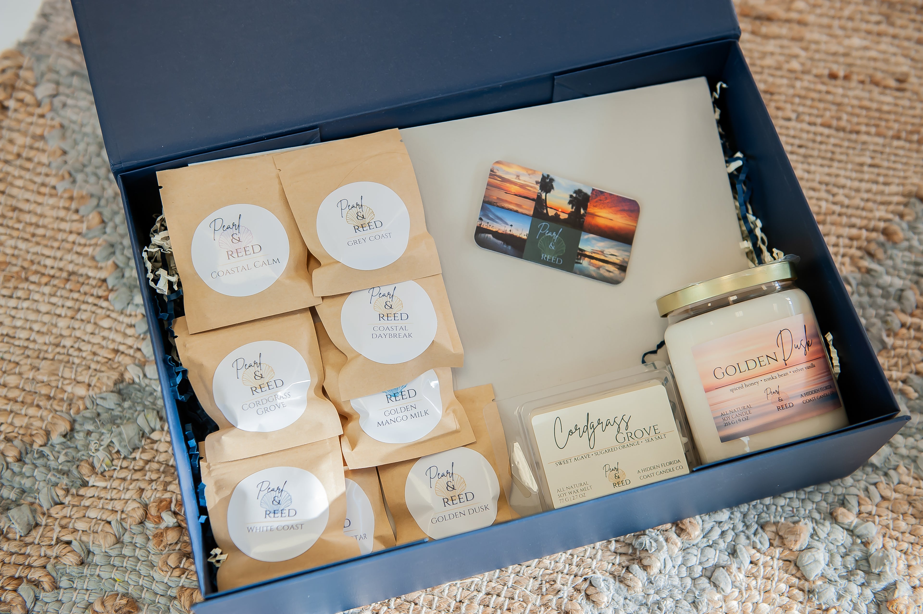 We also specialize in custom labeling and signature scent development. Create a private line under your own brand, design a fragrance unique to your business, or co-brand with Pearl & Reed for a truly distinctive offering. Our products can also be curated into gift baskets — yes, we do gift baskets — perfect for client appreciation, including luxury closing gifts for real estate agents.