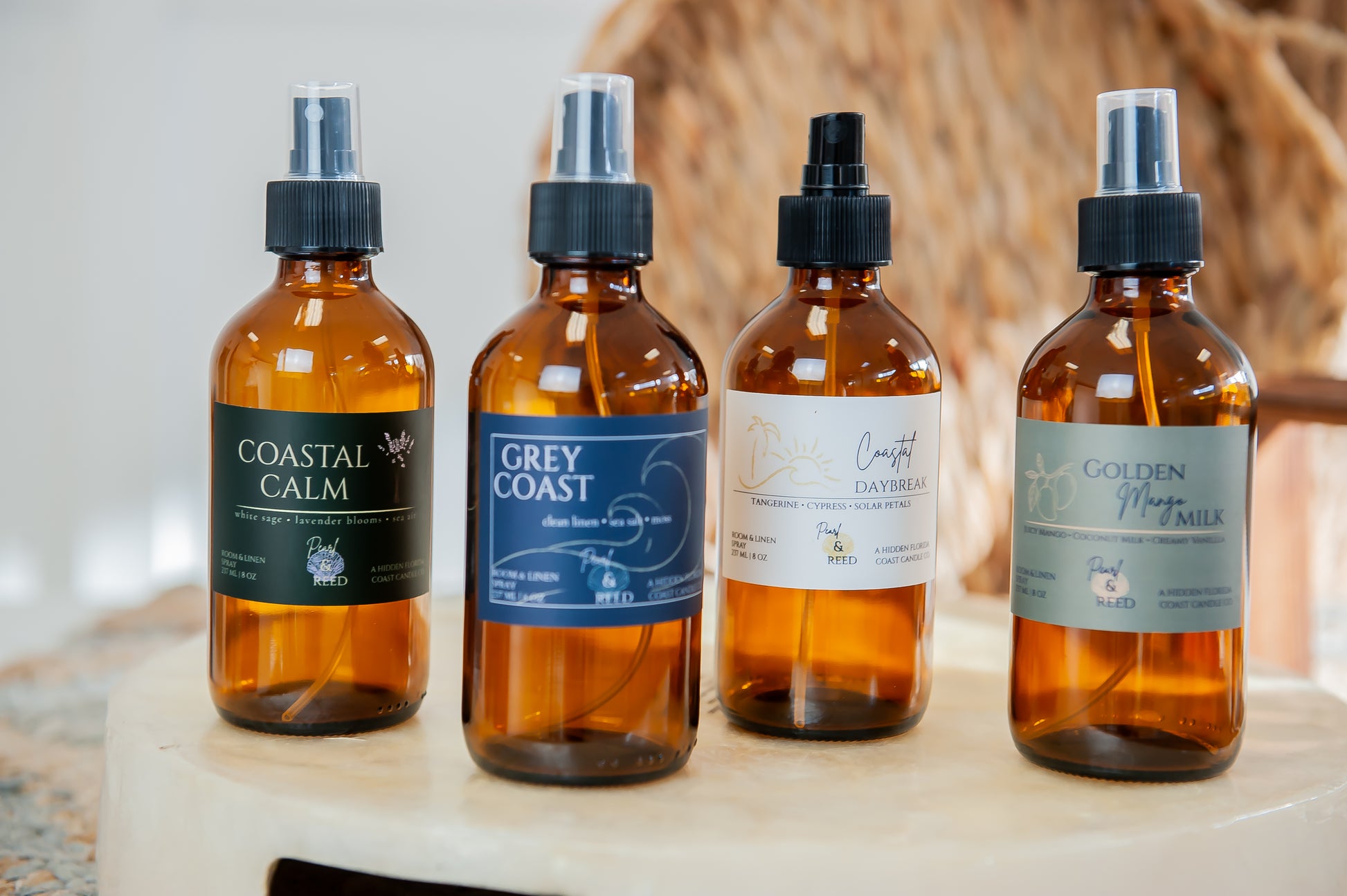 Elevate your space with a touch of coastal luxury. Our Room & Linen Spray, beautifully packaged in an 8 oz amber glass bottle, is designed to instantly refresh and revive. Crafted with clean, premium fragrance oils, each fine mist lingers lightly—perfect for spritzing on linens, in the air, or as a welcoming finish before guests arrive.